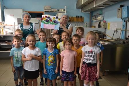 Дети подготовительной к школе группы №8 решили не оставлять без внимания наших замечательных поваров и сделали для них памятный подарок, а также совершили экскурсию на кухню детского сада. Ребята рассмотрели помещение, где готовится еда и предметы, помогающие повару ее готовить. Все остались очень довольны.